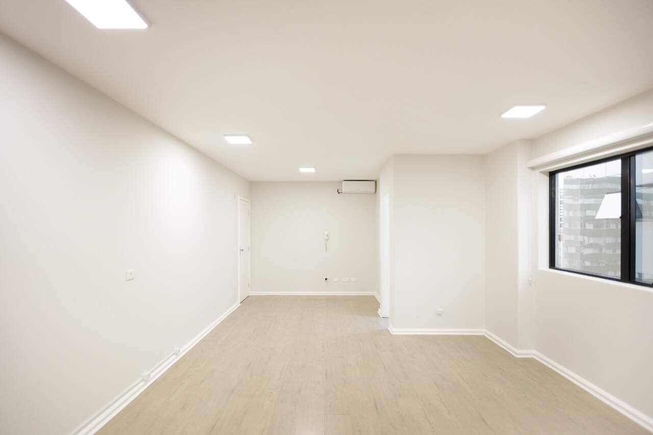 Excelente sala comercial para locação com piso laminado com 47,40 m² e uma bela vista do Centro Cívico. A sala conta com banheiro e copa com tampo em granito, além de vir equipada aparelhos de ar condicionado. Esta sala está localizada no º andar do Edifício World Business, localizado na Avenida Cândido de Abreu, 776, no coração do Centro Cívico, em Curitiba.